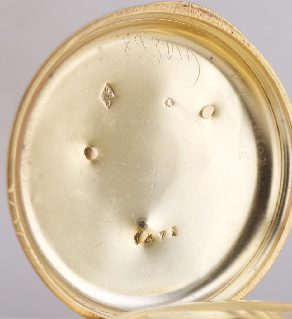 Hallmarks: French diamond-shaped maker’s mark and serial/case numbers stamped inside the case back.