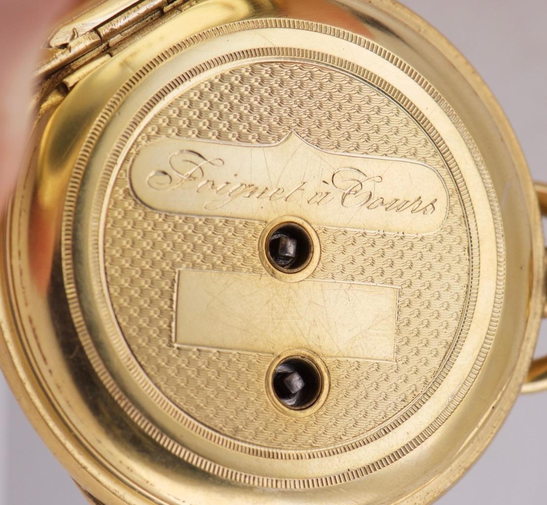 Presenting an incredibly rare and historically significant antique pocket watch, masterfully crafted by the renowned French watchmaker Foignet à Cours circa 1850. This extraordinary timepiece was specially commissioned for the cabinet of Pope Pius IX (whose papacy ran from 1846 to 1878).