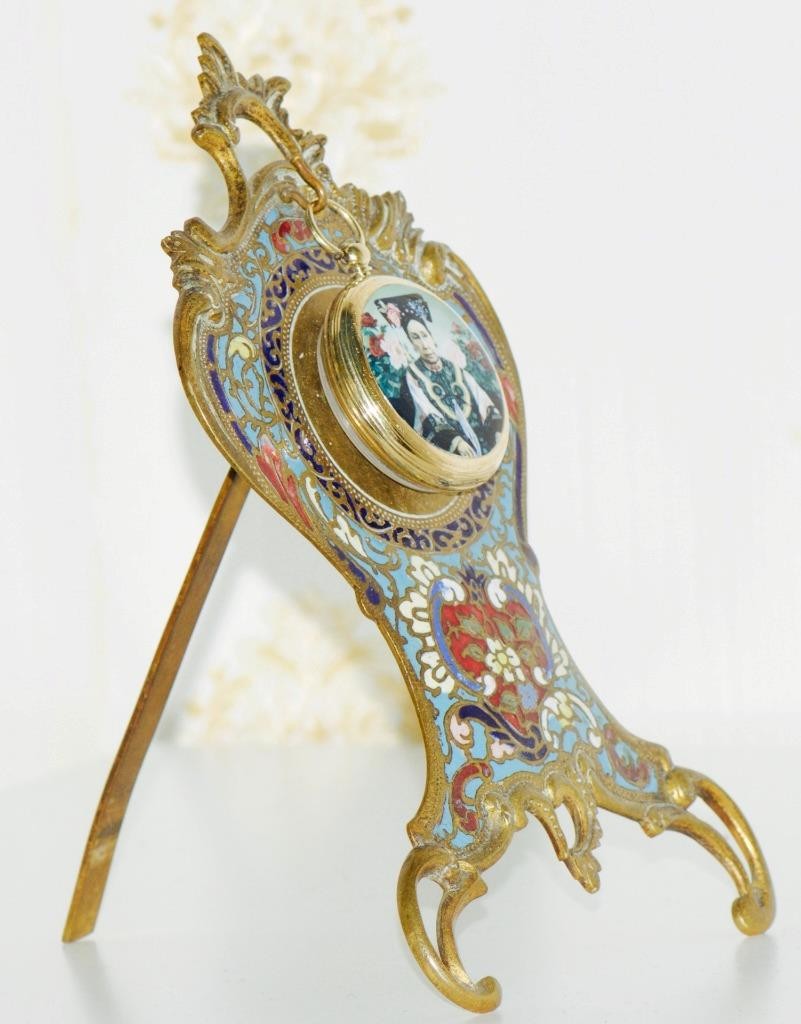 I am pleased to offer from my private collection this rare antique 19th Century solid 18k gold and enamel presentation pocket watch and matching gilt bronze and enamel desk sisplay stand ,specially made for the Chinese court of Empress CiXi.