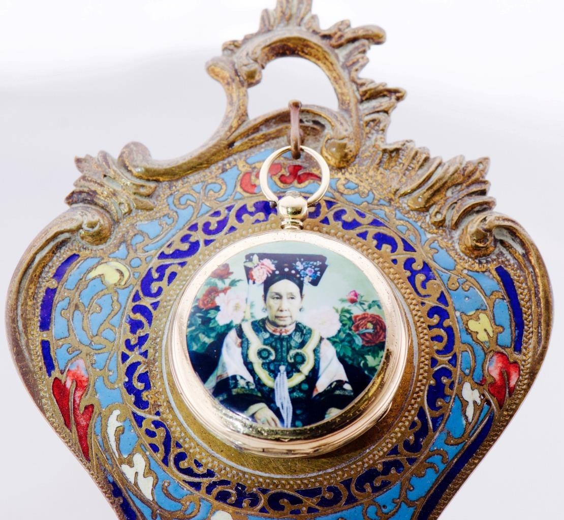 The watch case is solid 18k gold depicting an enamel portrait of the Chinese Empress CiXi. The watch was made Ulyahn&Bright,London -a watch master to King William IV.