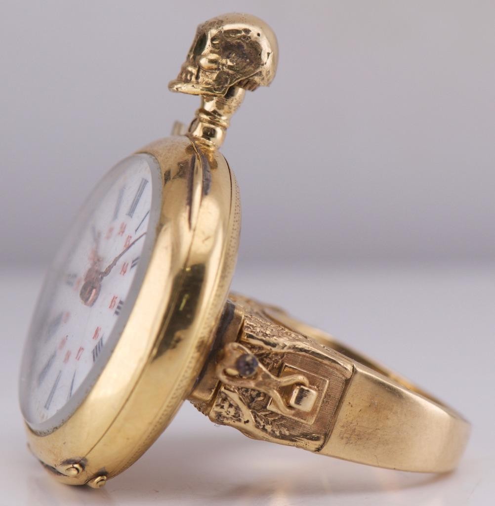 Antique French Memento Mori Skull Crown Ring Watch c1890 Hidden Poison Container