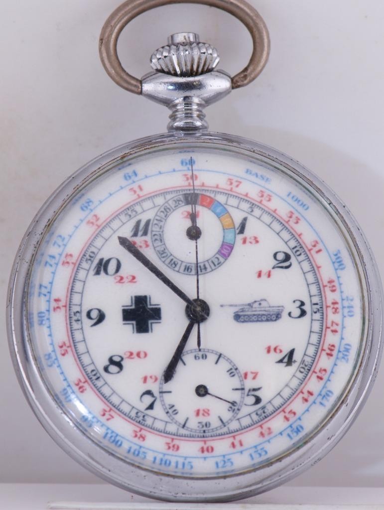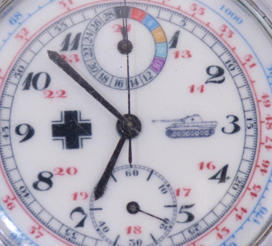 Dial: The white lacquer dial is in stunning condition. The red and blue scales are vibrant, and the unit-specific graphics (The Tank and the Cross) remain sharp and unfaded.