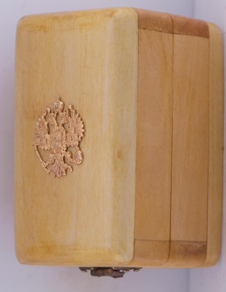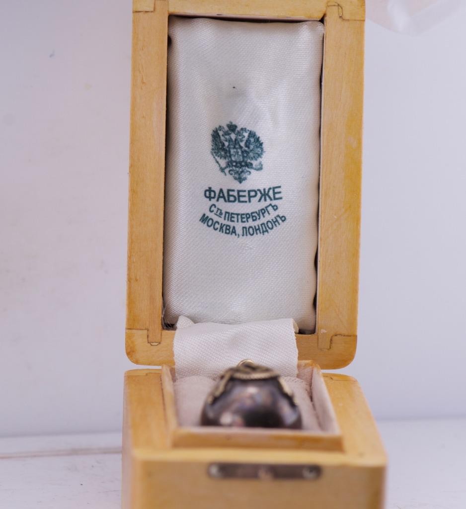 • Presentation: Original birchwood Fabergé box with gilt Imperial crest