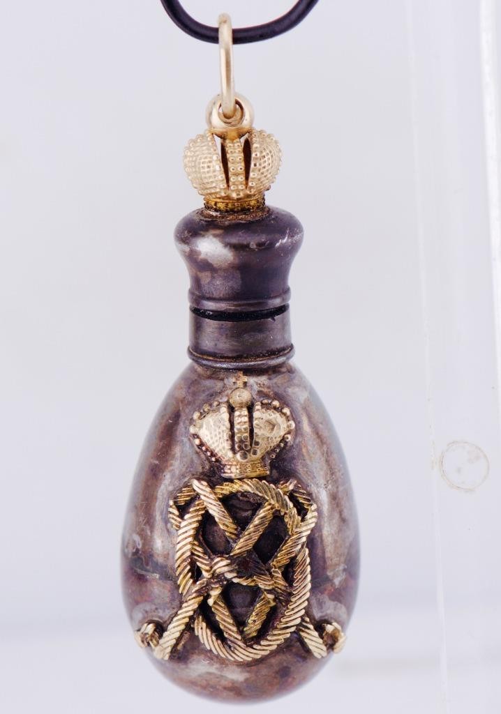 Be the first to review “Antique Imperial Faberge Silver & Solid Gold Presentation Perfume Bottle Pendant”