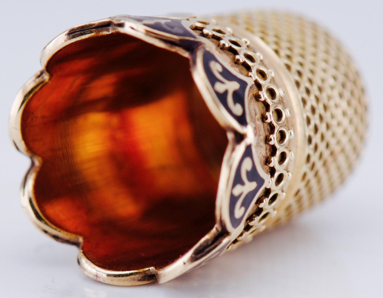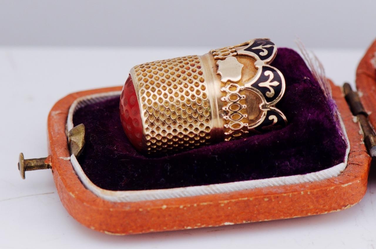 Fabergé thimbles were produced in exceptionally small numbers, typically as personal cabinet or vanity objects for imperial or court use. Pieces attributed directly to Empress Alexandra Feodorovna and retained with their original box are exceedingly rare, with comparable examples held in institutional or private museum collections.