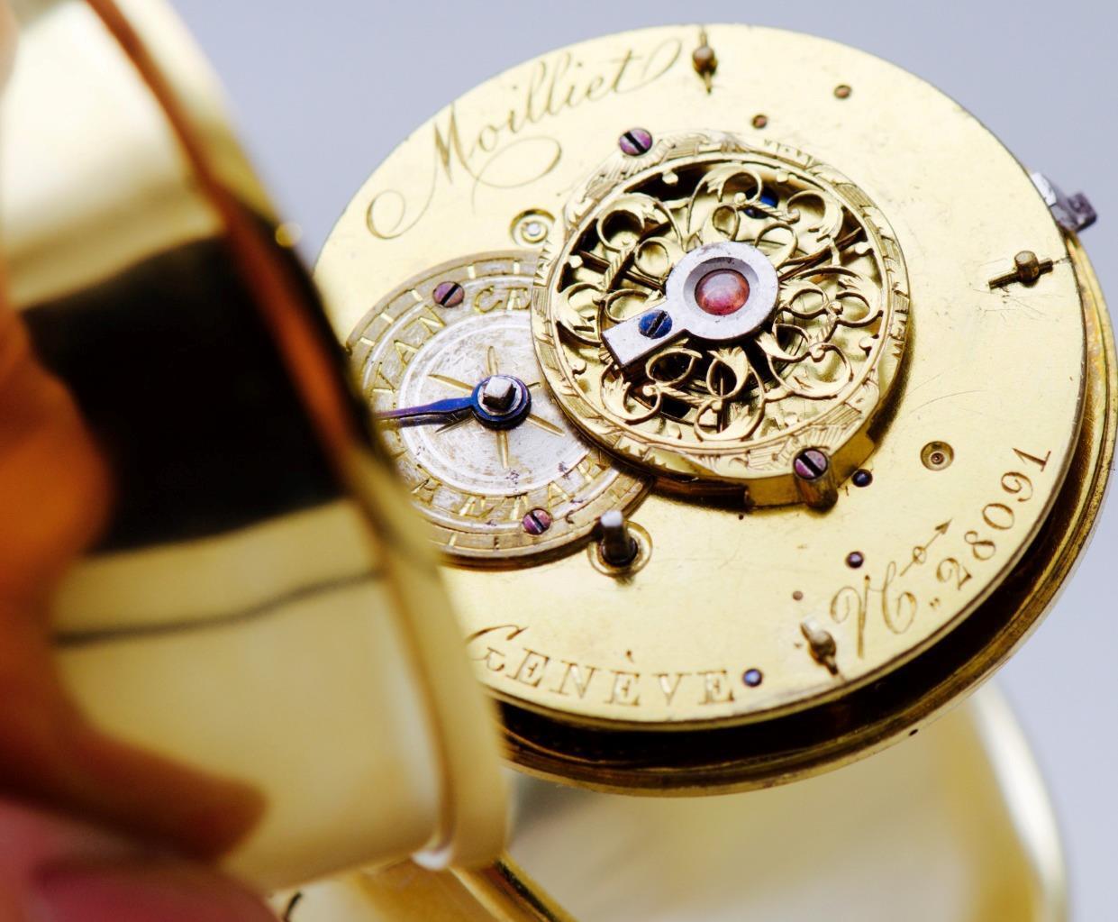 I am pleased to offer from my private collection this astonishing antique Imperial Russ Tsar’s Era military Officer’s award gilt silver Verge Fusee Easter egg desk clock c1810,made for the Court of Tsar Alexander I. The egg is mounted on 3 big bullets standing on a triangle base. The egg is engraved with the personal monogram of Tsar Alexander I.