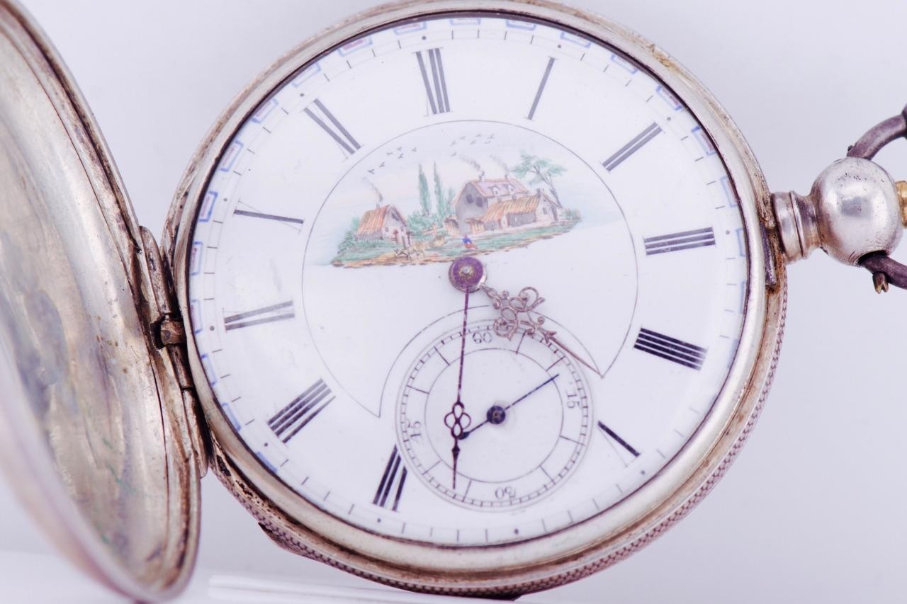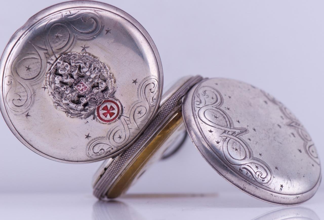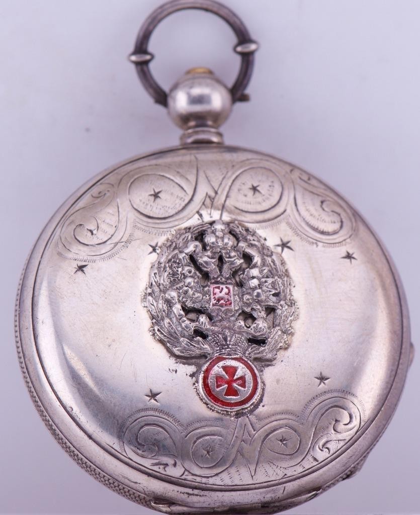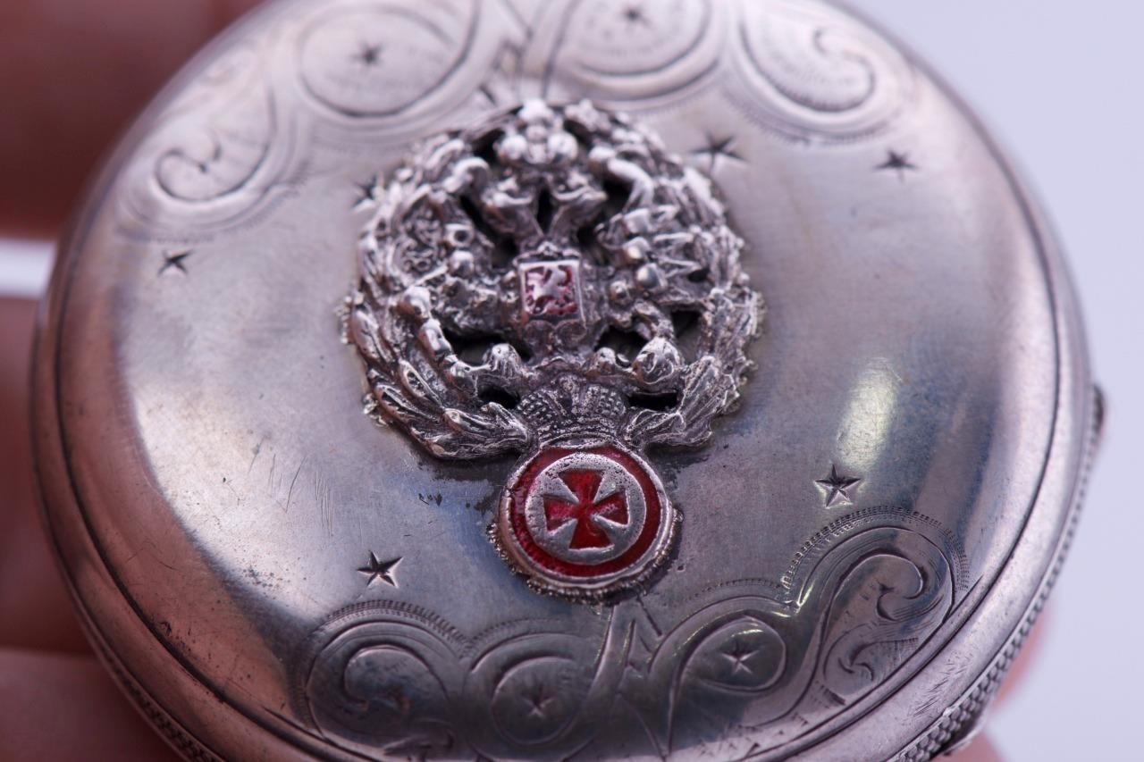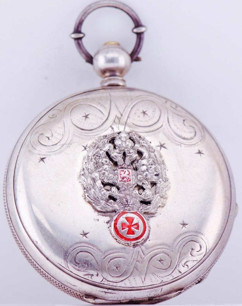 I am please to offer from my private collection this rare antique 19th Century Imperial Tsar’s Era Lucien Sandoz full hunter case silver pocket watch c1870’s. Hand engraved case depicting the Imperial coat of arms. Fine hand painted enamel dial. High grade detached lever movement,hand polished and hand finished,ruby endstone on balance.
