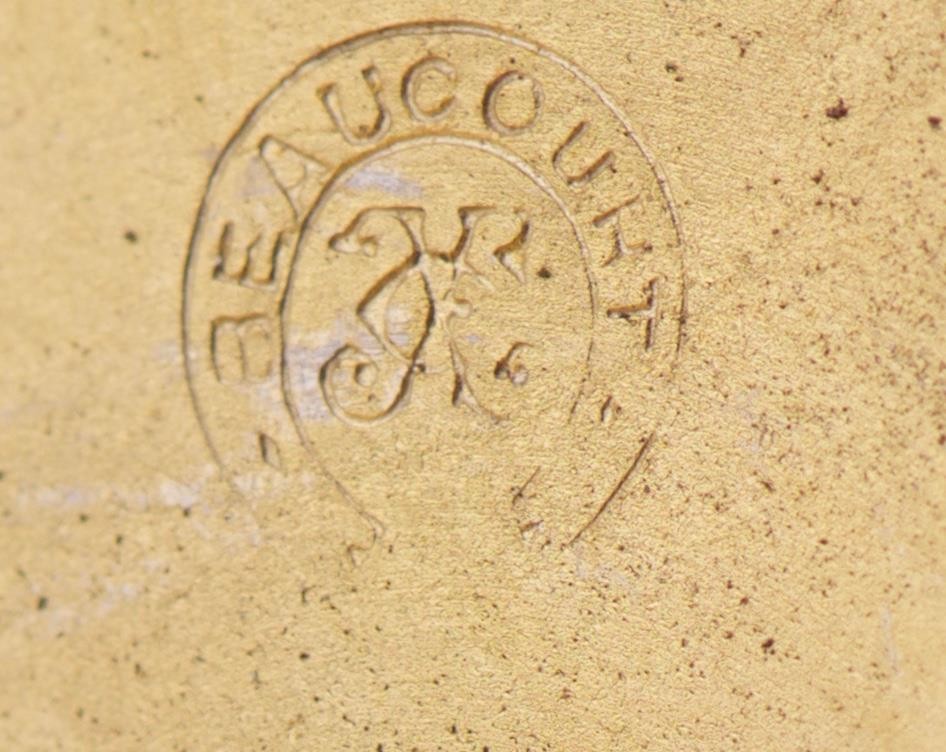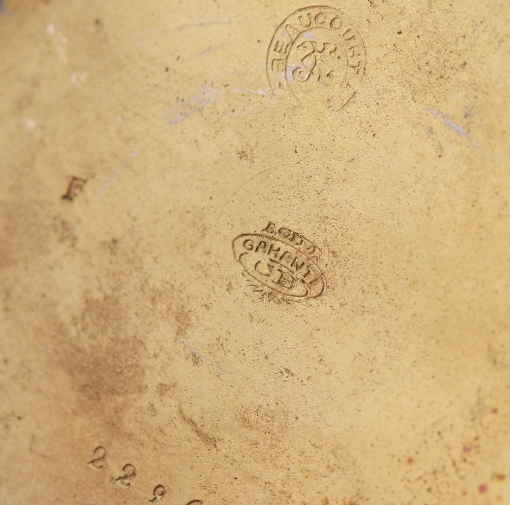 Hallmarks: Interior case marked “Acier Garanti” (Guaranteed Steel) with a circular “BEAUCOURT” stamp and the initials “CB,” indicating the French origin of the case manufacture (Japy Frères / Beaucourt region).
