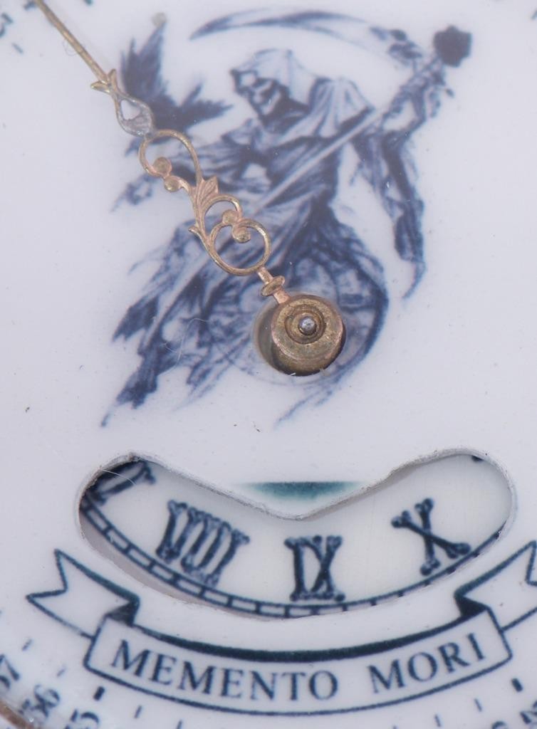 Features: A “digital” hour window at the bottom and a 60-minute outer track. The banner reads “MEMENTO MORI” beneath the hour aperture.