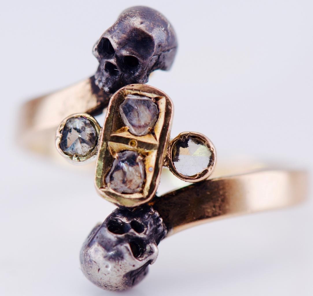 ANTIQUE VICTORIAN MEMENTO MORI GOLD SKULL RING