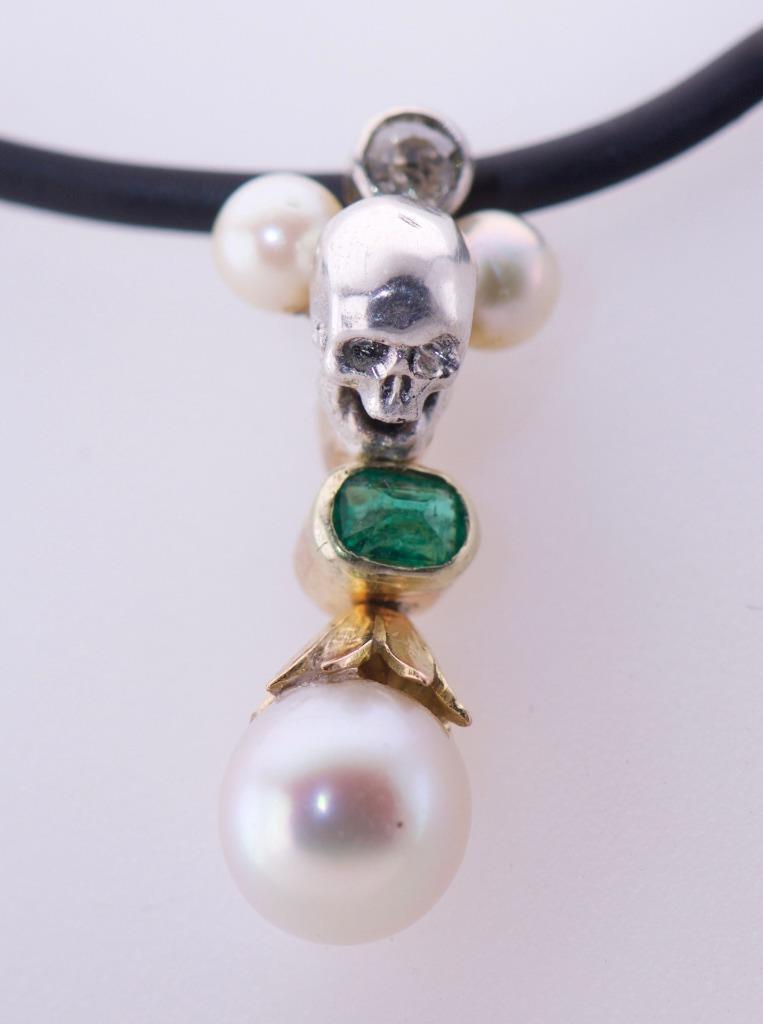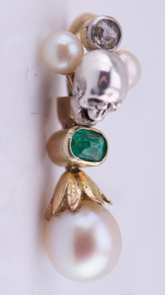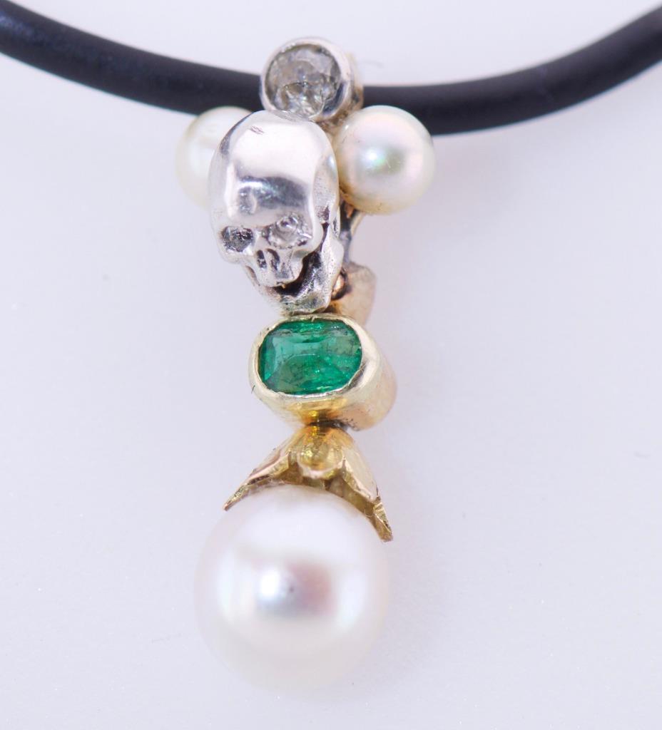 Presenting a rare antique 19th Century Victorian pendant fob, meticulously crafted from 18K gold and silver, and adorned with striking gemstones. This one-of-a-kind piece combines timeless elegance with Gothic symbolism, featuring a detailed skull motif that showcases the Victorian fascination with memento mori. Key features include: • A captivating emerald centerpiece encased in gold. • Brilliant diamond accents, adding sparkle and depth. • Lustrous sea pearls, delicately arranged for balance and beauty. • A finely crafted skull design, embodying both mystery and artistry. This unique pendant fob is perfect for collectors, Gothic jewelry enthusiasts, or anyone seeking a statement piece that bridges historical significance with intricate craftsmanship. Features: • Material: 18K Gold & Silver • Gemstones: Natural emerald, diamonds, and sea pearls • Design: Skull motif with gold and silver accents • Era: Victorian (1837–1901) • Condition: Excellent antique condition with minor wear consistent with age. All stones and pearls are secure and original. Dimensions: • 22.5mm high Provenance: An authentic Victorian-era piece, sourced from a reputable antique collection. Shipping & Payment Details: • Shipping: Safely packed and shipped with insurance. Worldwide shipping available. Why Buy From Us? We guarantee authenticity and customer satisfaction. Own a piece of history with this exquisite antique pendant fob. Let me know if you’d like further edits! This listing emphasizes the elegance, craftsmanship, and unique historical value of the piece.