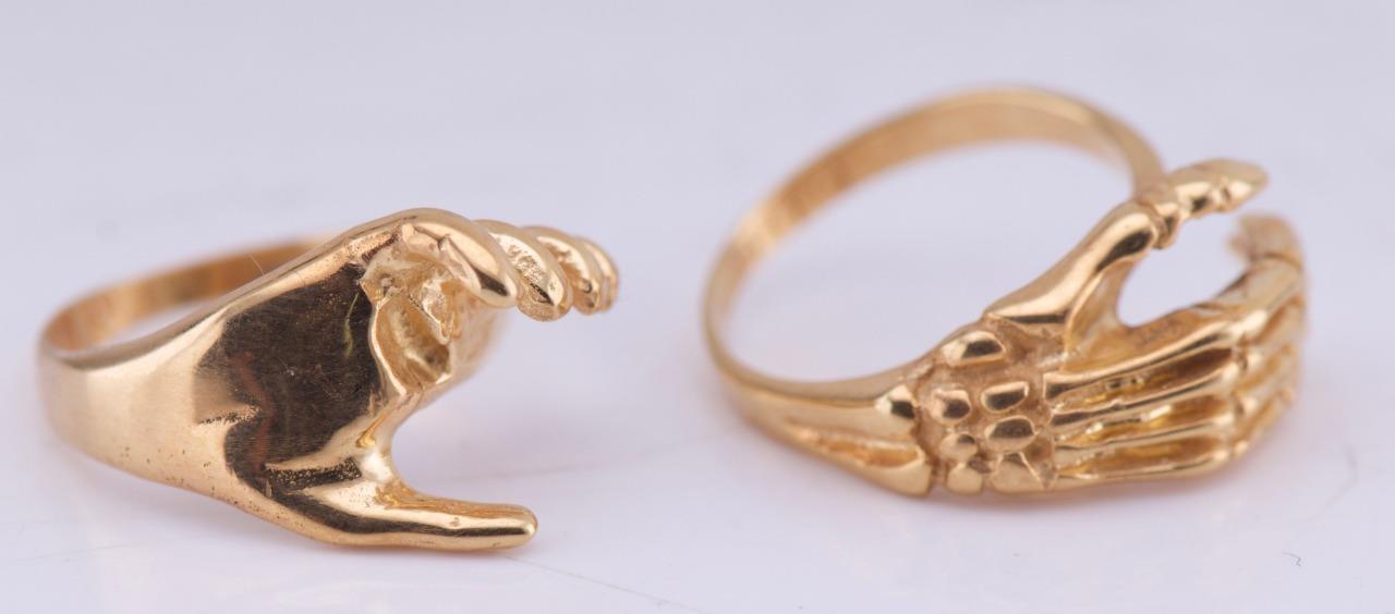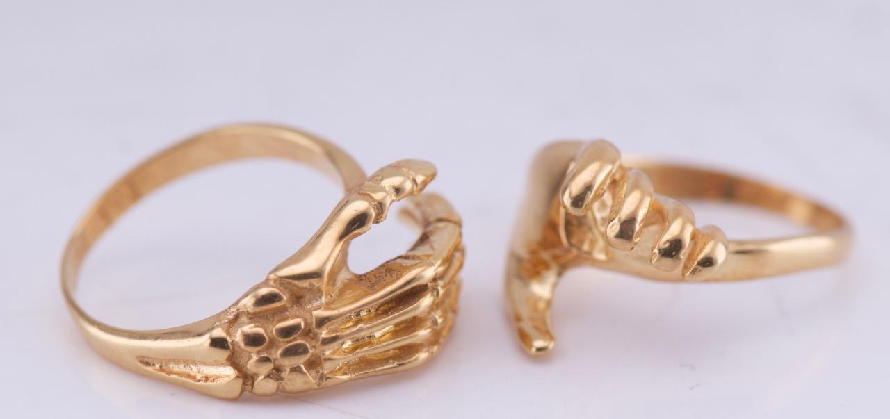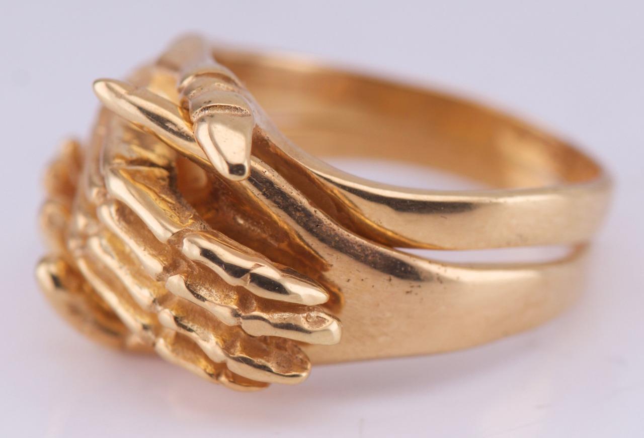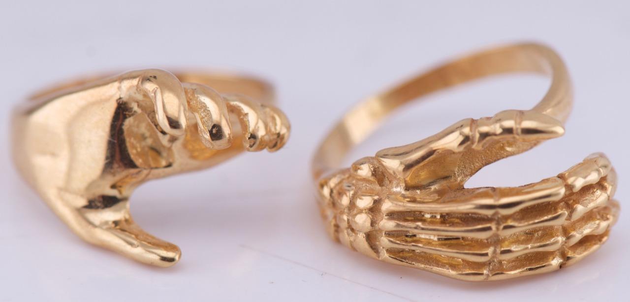 I am pleased to offer from my private collection this exquisite antique Victorian ring which is a remarkable piece of craftsmanship, made from 9k solid gold. It features a stunning Fede Gimmel design, where the ring splits into two interlocking parts, symbolizing unity, trust, and love. The standout feature is the intricately detailed skeleton hand motif, embodying the Victorian fascination with memento mori themes and eternal bonds. • Material: 9k Gold (hallmarked) • Style: Victorian Memento Mori / Fede Gimmel Ring • Design Details: The skeleton hand motif represents a unique blend of Gothic artistry and symbolism. The ring’s Fede Gimmel mechanism allows it to split into two separate but perfectly interlocking sections. • Size: 7 • Weight: 11 grams • Condition: Excellent antique condition with light wear commensurate with age. No visible repairs or damage to the design. Provenance: Dating back to the Victorian era (circa 1800s), this ring is a true masterpiece of symbolism and craftsmanship, combining the romantic significance of Fede Gimmel rings with the striking skeletal hand motif. Additional Details: This rare collectible ring is perfect for antique jewelry collectors or those with a taste for unique, Gothic-inspired designs. Its symbolic and artistic elements make it a standout addition to any jewelry collection. Shipping & Handling: • Will ship securely packaged with tracking and insurance. • International buyers are welcome
