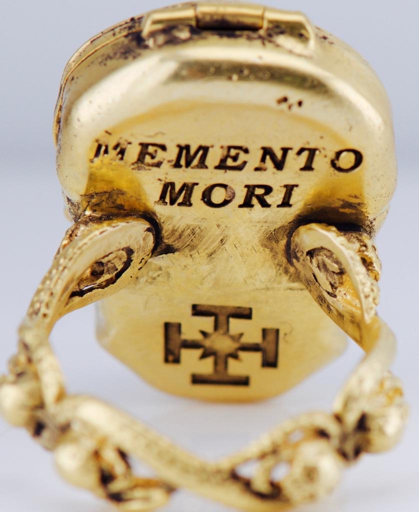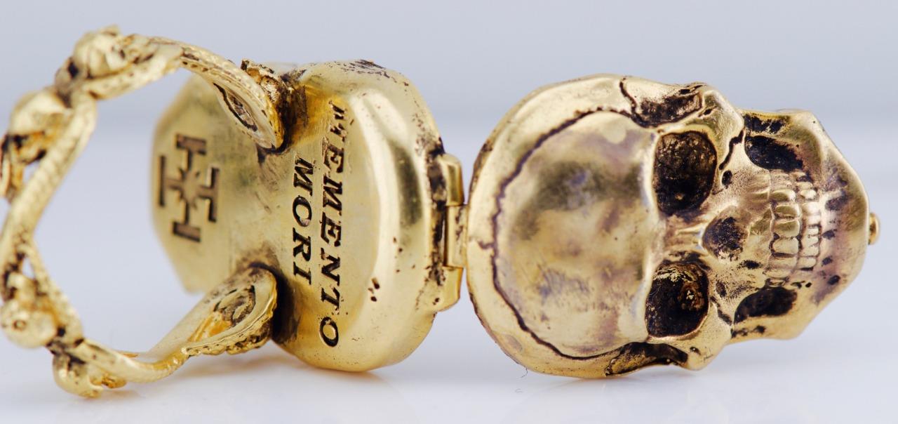 Memento mori pieces—translated from Latin as “Remember you must die”—served both as personal talismans and reminders of spiritual reflection. Rings with hidden compartments were often used to hold locks of hair, miniature portraits, dried flowers, or symbolic tokens of lost loved ones.