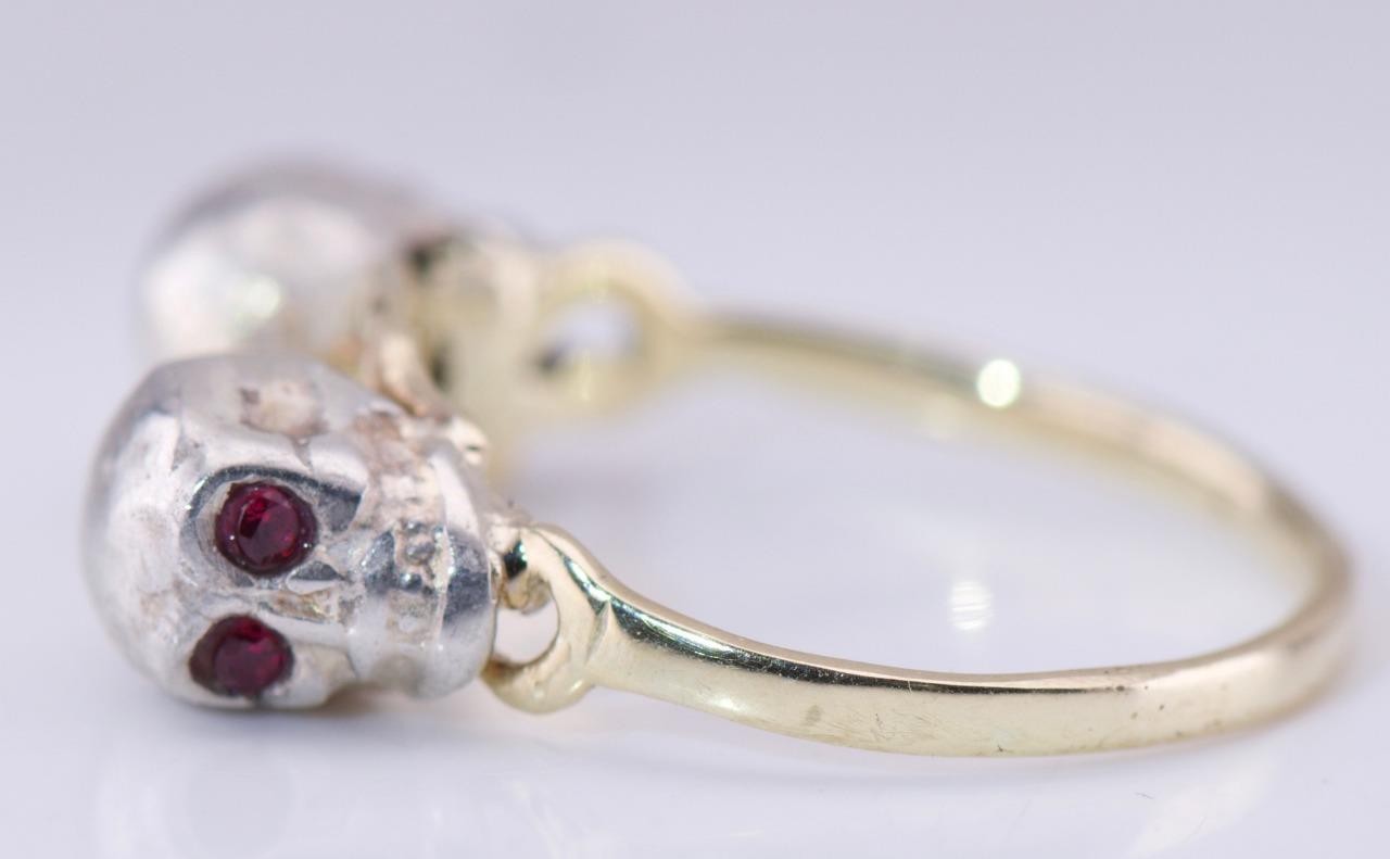 Antique Victorian Memento Mori Skull Ring 14K Gold Diamond Rubies Size 8