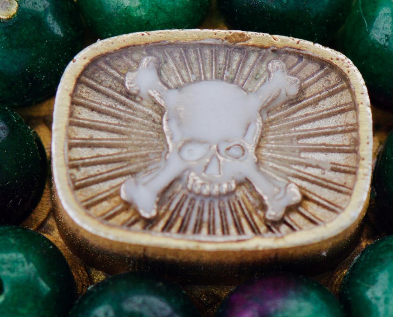 - Enamel skull and crossbones bezel