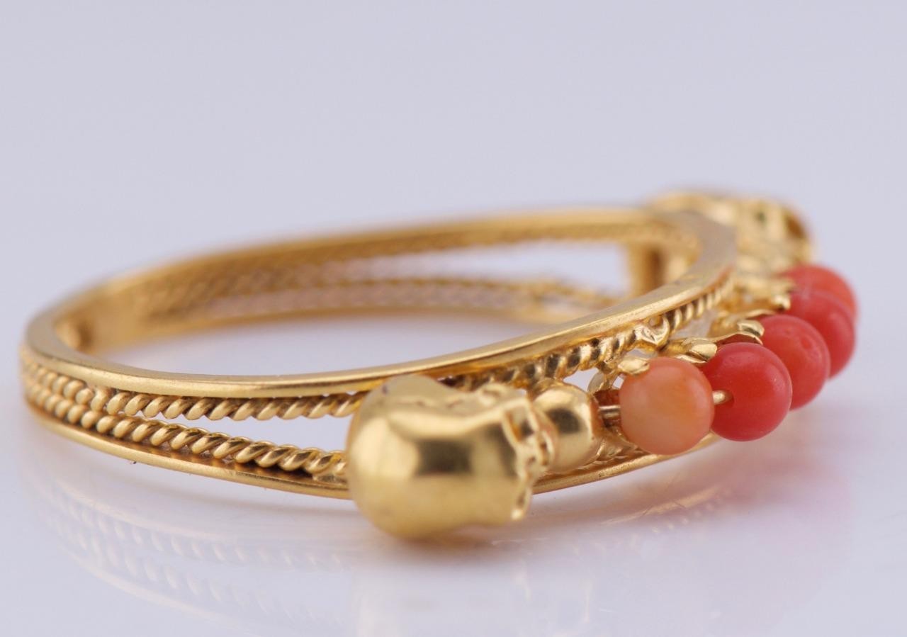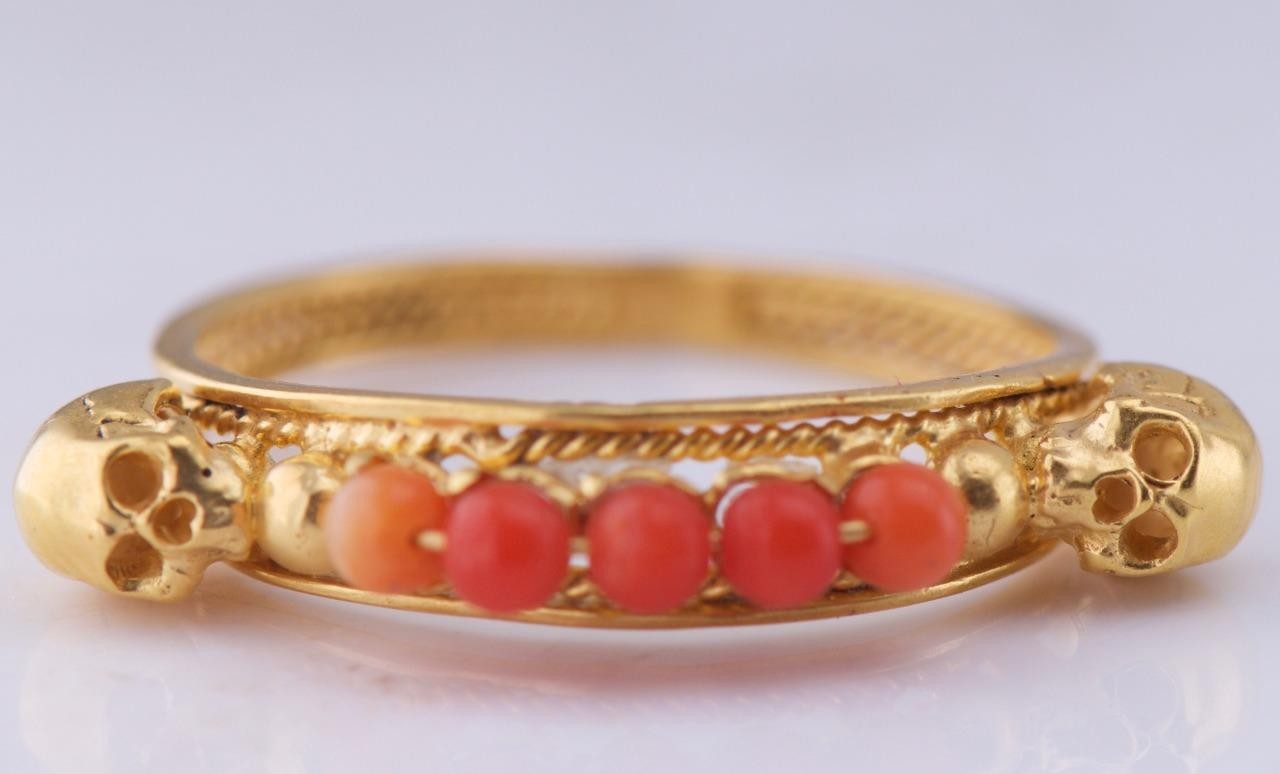 ANTIQUE 18K GOLD AND CORALS MEMENTO MORI SKULLS RING