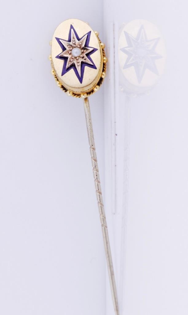 Be the first to review “Antique Victorian Tie Pin Silver and Solid 18k Gold Enamel Pearl c1880”