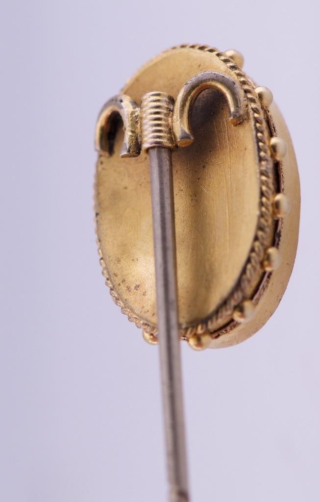 Antique Victorian Tie Pin Silver and Solid 18k Gold Enamel Pearl c1880