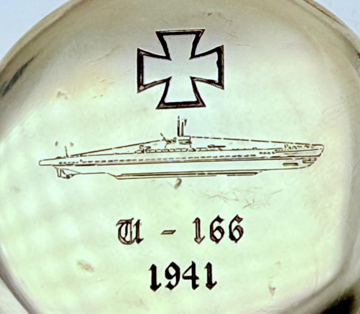 - Engravings: Detailed U‑boat depiction, iron-cross emblem, “U‑166 / 1941” marking