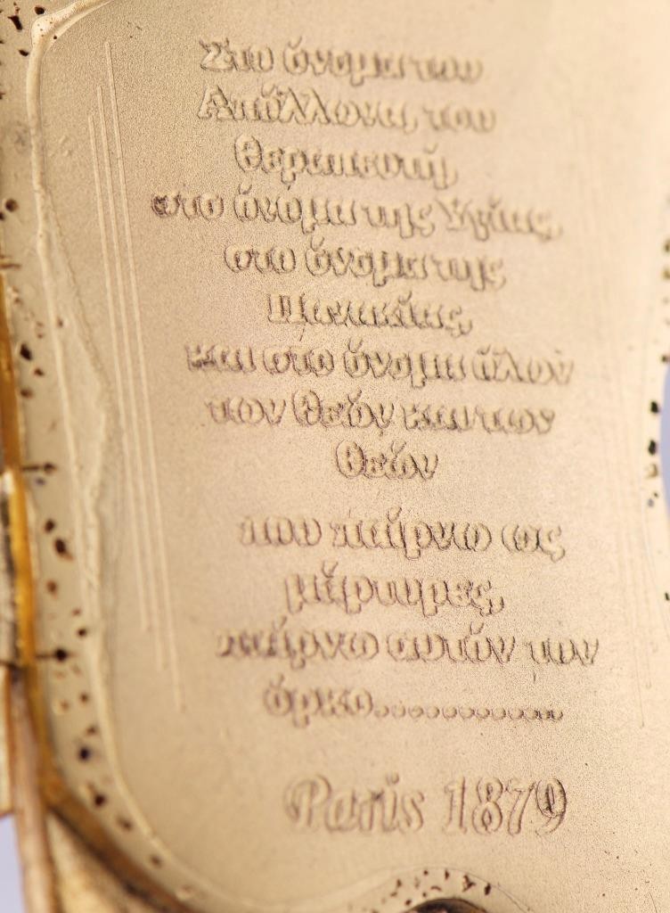 I am pleased to offer from my private collection this striking and rare 19th-century French memento mori desk clock, crafted in ornate gilt bronze. This dramatic piece was likely designed for a physician’s desk, combining both symbolism and function in a deeply meaningful way. The clock is hinged and opens to reveal detailed, sculptural motifs—each a reminder of life’s impermanence and the solemn duties of the medical profession. Design Highlights: • Memento Mori Theme: Dominated by a finely cast skull and serpent—classical symbols of mortality and wisdom. A second skull, encircled with the Latin inscription “Memento Mori”, reinforces the reminder to reflect on the inevitability of death. • Symbolism: The serpent, often associated with Asclepius (the ancient god of medicine), and the skull, symbolize the duality of healing and mortality. • Hippocratic Oath Inscription: The interior panel is engraved with an excerpt from the Hippocratic Oath, emphasizing the sacred responsibility of the physician. It includes the inscription “Paris 1879”, likely marking the date and place of its creation or presentation. Clock Features: • Movement: Manual wind (clock movement encased, movement type unverified) • Dial: White enamel with Roman numerals and blued steel hands • Material: Gilt bronze • Origin: France • Date: Circa 1879 • Style: Neo-Gothic / Romanticism with Baroque Revival influences Dimensions: [Optional: Insert dimensions if available] Condition: Very good antique condition. Gilding is well preserved with some light age-related wear. Hinges function properly; engraving and detailing remain sharp and legible. Clock movement appears intact but has not been tested for timekeeping. Remarks: An exceptional piece of symbolic horology and 19th-century medical history. Likely a presentation gift to a physician, this rare artifact bridges the worlds of art, mortality, and science. A remarkable display item for collectors of medical antiques, Gothic decor, or philosophical curiosities. All the parts original. 8cm high,12cm width when unfold.
