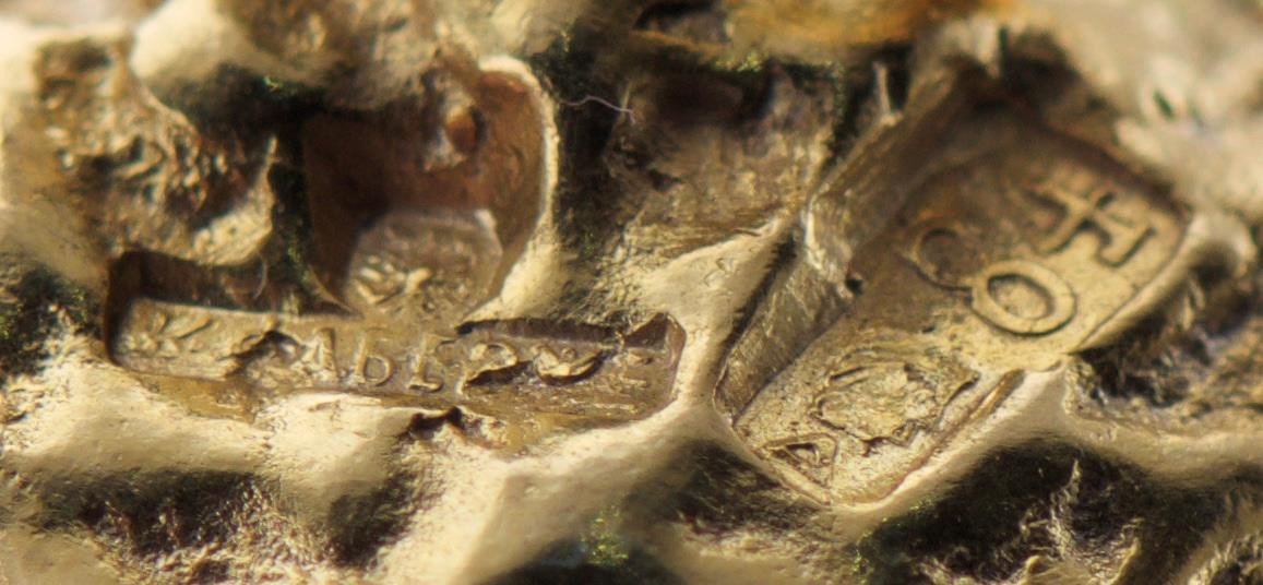 • Hallmarks: The pendant features clear, crisp stamping on the gilt-silver cap. It bears the “84” silver purity standard mark alongside the distinct, recognizable maker’s mark for K. Fabergé.