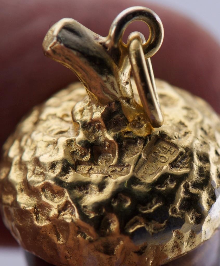 RARE Antique c.1906 Fabergé Gilt Silver & Carved Agate Acorn Pendant -Hallmarked
