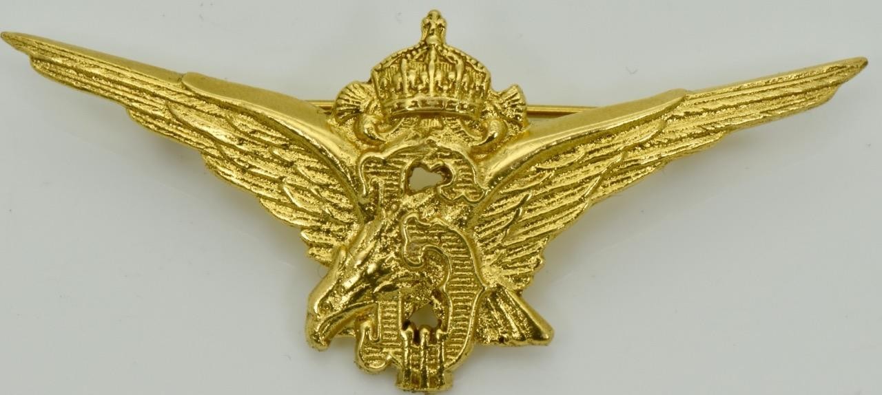 I am please to offer from my private collection this very rare WWII Bulgarian Royal military pilot’s ace award 18k gold plated silver badge. The badge depicting the monogram BIII of King Boris III of Bulgaria beneath the royal crown and the eagle. This was the official Bulgarian Royal Arirforce captain’s award badge. 55mm end to end