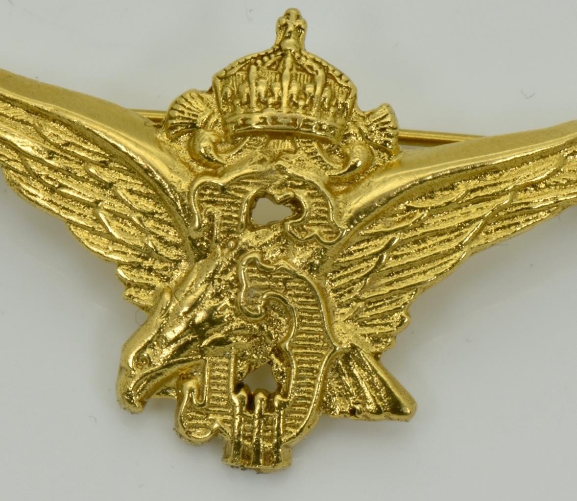 Rare WWII Bulgarian Royal military pilots ace award 18k gold plated silver badge