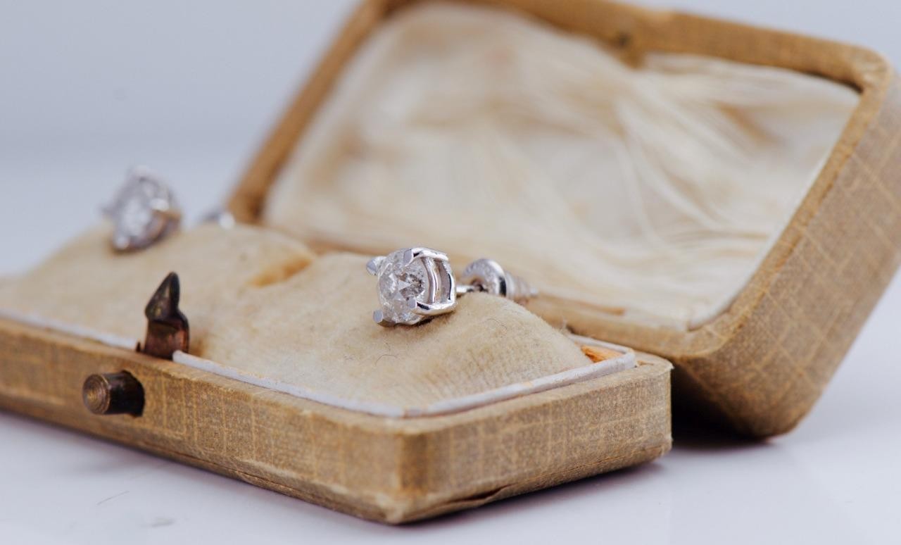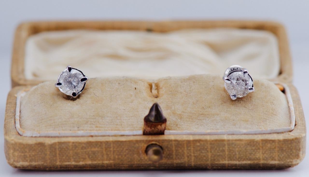 Add a touch of classic sophistication to your collection with these stunning vintage stud earrings. Featuring beautifully cut round stones set in solid 18k white gold, these earrings offer brilliant sparkle and timeless appeal. The earrings come nestled in a beautiful vintage velvet and silk-lined presentation box, making them perfect for gifting or safe-keeping.