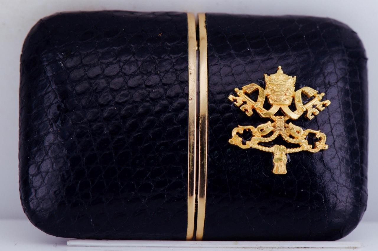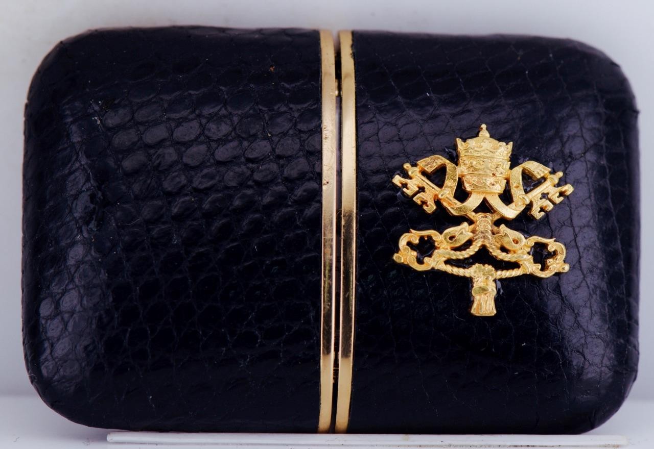 A striking and uncommon object combining horology, travel design, and Vatican symbolism, ideal for collectors of religious artifacts, luxury desk accessories.