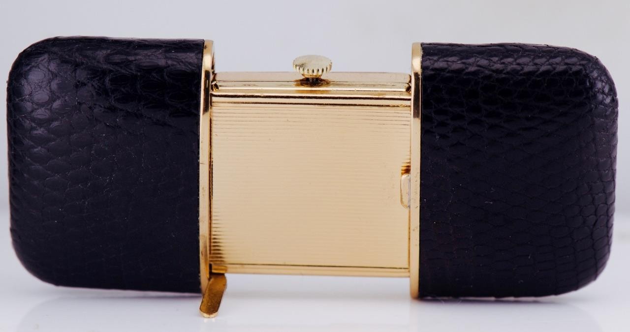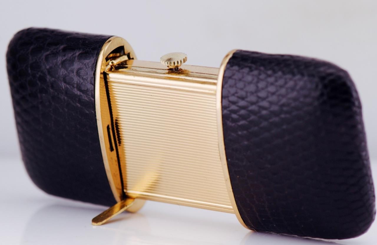 Vintage Mappin Gold Plated Vatican Travel Desk Pocket / Desk Watch Leather Case